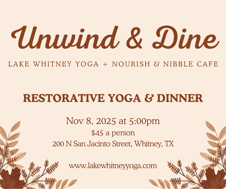 Questions? Email lakewhitneyyoga@gmail.com or text the studio at 254-855-5053.